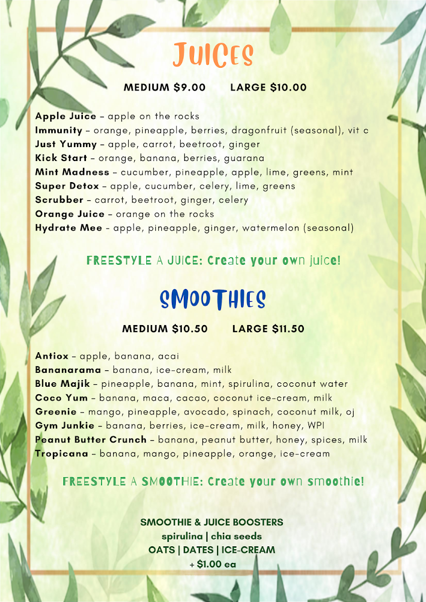 Orange, pineapple, berries, dragonfruit (seasonal), vitamin c